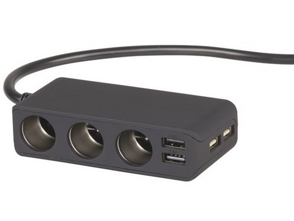 You get three cigarette lighter sockets, two high-current 2.4A USB charging sockets and two standard 1A USB charging sockets. Of course, a 120W maximum total applies (since that’s the maximum rating of the one in your dash). The three cigarette lighter sockets aren’t voltage regulated so they’ll output the same voltage as your vehicle, however the USB charging ports are regulated to 5VDC regardless of the input.
