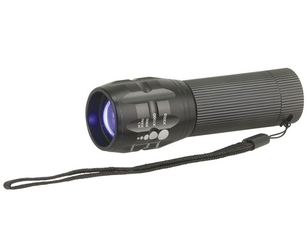 Ultra powerful UV light with an adjustable beam. UV torches are especially useful for nightclubs and security checkpoints for confirming the validity of identification. This ultra-bright 3W LED puts out a huge amount of UV light, so it’s also great for night games such as Spotlight in the dark! Includes a wrist-strap.